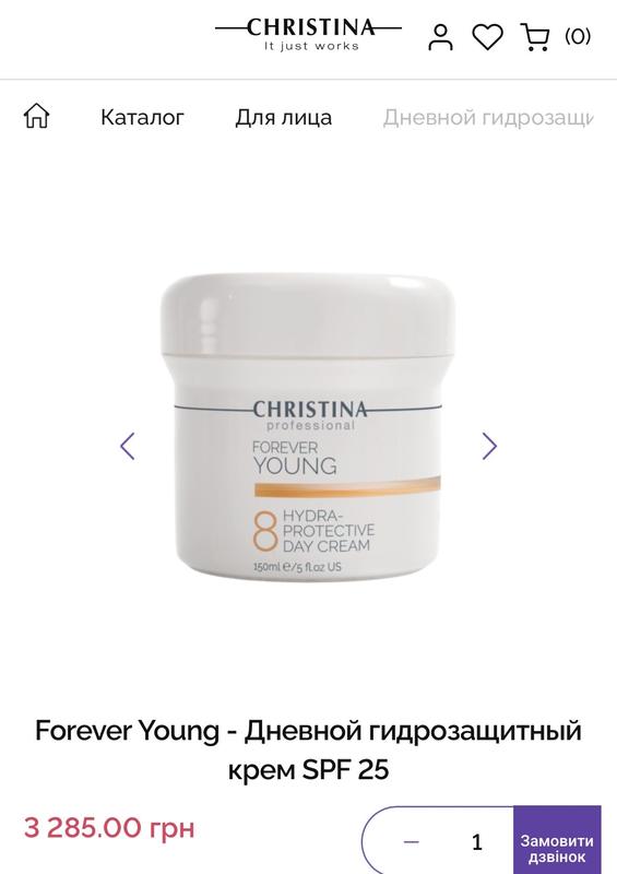 Практично новий, пару затестів, 150 мл, терміни хороші. Особливості Christina Forever Young Hydra Protective Day Cream SPF25: - фотостабільні УФ-фільтри ефективно захищають і від UVA- й UVB-променів; - забезпечує довготривале зволоження навіть в умовах з сухим повітрям; - пептидний комплекс стимулює вироблення колагену, підвищує пружність і зменшує дрібні зморшки; - вітамін А прискорює оновлення, покращує загальну текстуру шкіри та її тон; - захищає клітини від ушкоджень, зменшує дію вільних радикалів і підтримує молодість; - комфортний і легкий, без відчуття жирності; - підходить навіть для чутливого епідермісу.