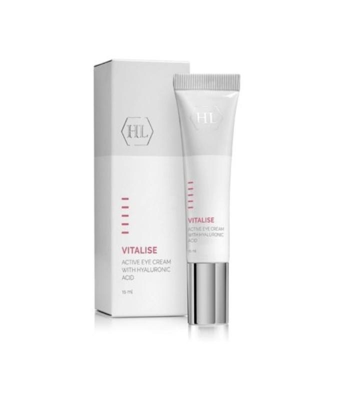 Крем для активного увлажнения кожи вокруг глаз. Гиалуроновая кислота, витамин Е мягко ухаживают за нежной кожей век, препятствуя обезвоживанию и образованию мимических морщин. Увлажняющий, смягчающий крем для век с гиалуроновой кислотой, регенерирующим комплексом и витаминами. Интенсивно восстанавливает и ревитализирует нежную и чувствительную кожу вокруг глаз. Предотвращает образование морщин, уменьшает отечность, питает и укрепляет кожу вокруг глаз, стимулирует выработку церамидов и пролиферацию фибробластов, обеспечивает накопительный лифтинговый эффект. Показания к применению: Для всех типов кожи; Увлажняющее действие; Способствует восстановлению кожаного покрова; Лифтинг эффект; Предотвращение старения кожи. Активные ингредиенты: Пантенол, лизат бифидобактерий, гидролизованная гиалуроновая кислота, пальмитоил изолейцин, экстракт комифоры мукул, гиалуронат натрия, витамин Е. Гидролизованная гиалуроновая кислота - проникает в средние и глубокие слои кожи и увлажняет кожу, способствует уменьшению морщин. Гиалуронат натрия - полисахарид, важный структурный элемент кожи. Благодаря своей высокой гидрофильности (способности связывать воду) способствует поддержанию нормального водного баланса в клетках кожи, образует на поверхности кожи защитную пленку, удерживая влагу и препятствуя испарению. Уникальное сочетание различных структур гиалуроновой кислоты позволяет увлажнять нежную кожу как в глубоких слоях, так и на поверхности, что способствует разглаживанию морщин. Пальмитоил изолейцин - ревитализирует, оживляет кожу, восстанавливает ее упругость, активизируя систему детоксикации клеток, стимулирует синтез коллагена. Экстракт комифоры мукул - является сильным антиоксидантом, уменьшает отечность, способствует восстановлению водно-липидного баланса кожи. Витамин Е (токоферил ацетат, токоферол) - эффективный антиоксидант, замедляет процесс старения кожи, разглаживает морщины, улучшает эластичность, стимулирует регенерацию клеток, защищает кожу от ультрафиолетового излучения. Лизат ферментов бифидобактерий - запатентованный комплекс растительных экстрактов и масел, обладающий уникальным восстанавливающим и сосудоукрепляющим действием, глубоко проникает в кожу, активизирует ферментативные процессы в поврежденных клетках, стимулирует процесс обновления клеток, оказывает наиболее выраженное репаративное действие, защищает клетки. Ограничивает воспалительные реакции в коже; стимулирует выработку церамидов и пролиферацию фибробластов. Пантенол (Витамин В5) - смягчает кожу, препятствует потере влаги, уменьшает воспаление и раздражение кожи. Способ применения: Наносить на очищенную кожу периорбитальной области, избегая подвижной части век. Идеально ухаживает и за кожей губ.