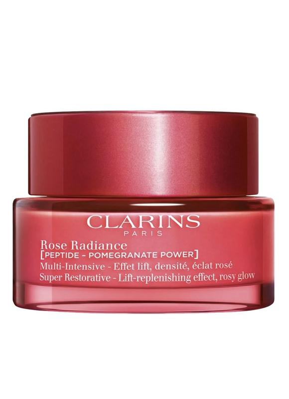Для цього покоління крему Роуз Рейдіанс дослідники Clarins залучили формулу, що дає змогу повернути шкірі здорове сяйво та пружність під час менопаузи. У серці формули унікальний комплекс із пептидами й екстрактом граната допомагає вирівняти колір обличчя та зарядити шкіру енергією. З кожним днем використання шкіра стає гладенькою і набуває здорового рожевого відтінку. Clarins поєднав екстракти дроку та харунгани, що підвищують пружність шкіри та еластичність. Цей потужний дует захистить шкіру від передчасної втрати важливих волокон протягом менопаузи. Рожевий відтінок крему Роуз Рейдіанс допомагає відновити сяйво шкіри, а також покращує настрій. Формула на 93% складається із натуральних інгредієнтів. Крем має мʼяку текстуру, швидко поглинається.