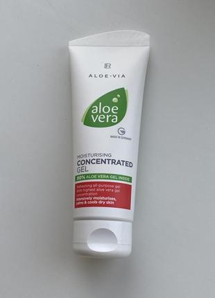 ALOE VIA Aloe Vera Зволожуючий гель-концентрат (Concentrated Gel) є багатофункціональним, універсальним косметичним продуктом, щоб доглядати за шкірою обличчя, тіла). Консистенція густа, але легко наноситься. Основний компонент Алое Віра (гель) міститься у великій кількості – 90 відсотків. Відноситься до освіжаючому гелю, який рекомендується застосовувати для пошкодженого і сухого дерми. Покриви після використання стають більш пружними, еластичними, м'якими і зволоженими, гладкими, свіжими. Використовується для поліпшення еластичності/пружності, зміцнення захисту від негативного впливу, зняття роздратування, почервоніння, подразнення, нейтралізації опіків тощо. Приємно охолоджує. Добре вбирається. Парфумерні віддушки відсутні.