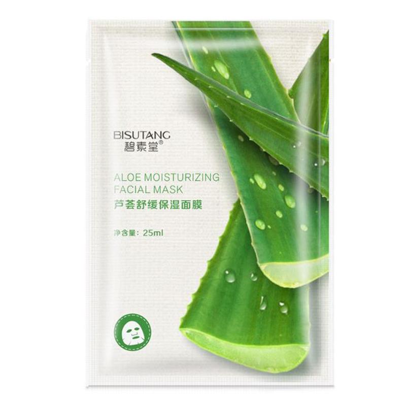 Тканинна маска для обличчя з натуральним екстрактом Алое Віра Bisutang ефективно пом'якшує шкіру обличчя, насичує її вологою, не надаючи шкірі при цьому зайвого блиску і не закупорюючи пори. Тканинна маска інтенсивно зволожує, усуває лущення, знімає запалення, звужує пори і скорочує зморшки. Не містить парабенів, штучних пігментів, матеріалів тваринного походження, бензофенону, триклозану. Підходить для всіх типів шкіри, включаючи чутливу. В складі: - Екстракт Алое Віра - покращує еластичність шкіри, уповільнює процеси старіння, нормалізує вироблення шкірного себуму, знижує появу акне, має протизапальні властивості, які зменшують запалення шкіри. - Екстракт граната - відбілює, знімає подразнення шкіри, ефективний при екземі або псоріазі. - Екстракт плодів ківі - продовжує молодість клітин та сприяє виробленню нових колагенових волокон, зменшує сухість та лущення, відновлює мембрани клітин, активізує процеси регенерації. Як використовувати: Нанести маску на попередньо очищену шкіру обличчя, уникаючи областей навколо очей і губ. Через 10-20 хвилин зняти. Виконати масаж шкіри легкими рухами до повного вбирання залишків маски. Примітка: Якщо ви відчуваєте дискомфорт або ненормальну реакцію на шкірі, рекомендується припинити використання. У випадки потрапляння в очі негайно промити водою: Зберігати в прохолодному і темному місці.