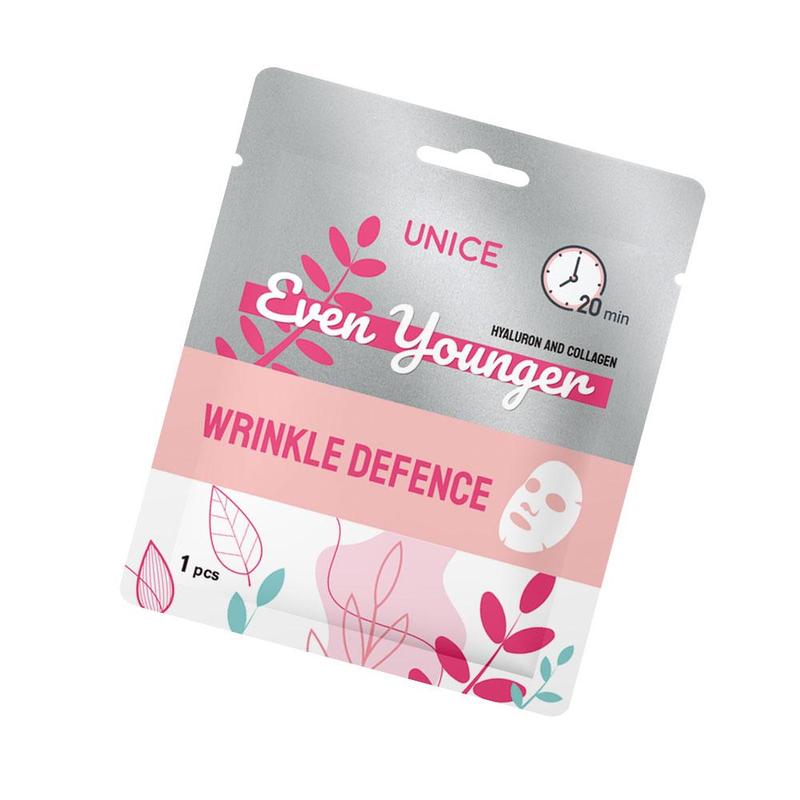 Маска для обличчя проти зморшок UNICE Even Younger містить гіалурон і колаген, які мають чудові зволожуючі властивості. Активні компоненти в складі маски помітно скорочують зморшки та заломи на шкірі обличчя. Виглядай ще молодше!