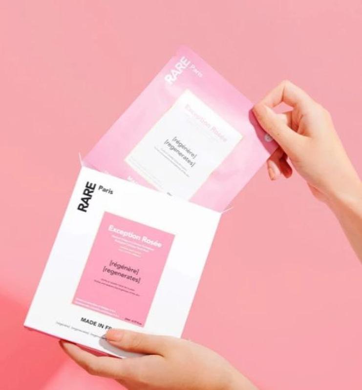 ідновлююча маска для обличчя RARE Paris Exception Rosée з церамідами, Омега 3 та 6 Exception Rosée Regenerating Face Mask Бокс 5 шт. - 1250грн. Мультиактивна формула маски, збагачена церамідами, Омега 3 та 6, відновлює шкіру обличчя, надає їй здорового та сяючого вигляду. Маска омолоджує, запобігає ранньому старінню, стимулює оновлення шкіри, зміцнює захисний бар’єр. За 20 хвилин шкіра виглядає помітно відпочилою, підтягнутою та пружною! Маски RARE Paris зі зручною викройкою із біорозкладної целюлози та пасують абсолютно до будь-якої форми обличчя. Ви можете займатися своїми справами та бути впевненою: маска не спаде з обличчя, а сироватка не залишить слідів на одязі. Використовуйте вранці або ввечері. - Бадьорить шкіру та пробуджує її сяяння - Стимулює оновлення клітин шкіри - Зміцнює шкіру і сповільнює її старіння - Виготовлено з рослинних компонентів - Маска виготовлена з рослинного та екологічно чистого целюлозного волокна