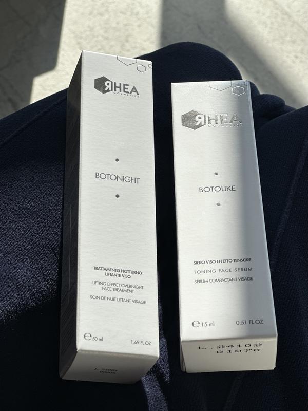Якщо вам потрібна миттєва підтяжка обличчя, ви можете використовувати нашу сироватку Rhea Cosmetics BotoLike з VenomPeptide, пептидом, який імітує отруту гадюки для розгладження зморшок. Для забезпечення тривалого ефекту ми поєднали його з пептидом LiftPeptide, який розслаблює мімічну мускулатуру, посилюючи ефект розгладження. В результаті сироватка з ботоксоподібною дією: смертельно небезпечна для зморшок та тонких ліній. Нічний ліфтинг-догляд Rhea Rhea BotoNight — маска з сильним ефектом ліфтингу, яка помітно покращує овал обличчя. Засіб надає шкірі додаткової еластичності й тонусу, роблячи її зранку свіжішою, пружнішою і помітно молодшою. Формула продукту розроблена таким чином, щоб активні інгредієнти впливали на шкіру, стимулюючи її неврологічні процеси. VenomPeptide — пептид, що імітує отруту гадюки, для розгладження зморшок. Matrikine відновлює пошкодження шкіри, спричинені старінням. ChronoComplex посилює природний захист епідермісу від шкідливого впливу довкілля. Він також оживляє та зміцнює шкіру. Як використовувати Наносити на очищену шкіру на ніч (замість або поверх вашого нічного крему). Вранці змити водою.
