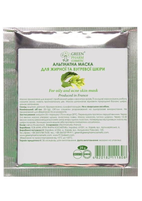 Альгінатна маска для жирної та вугревої шкіри for oily and acne skin mask, 3 шт х 25 г