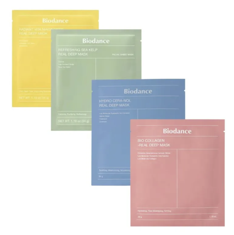 Набір 4 маски гідрогелевих масок Biodance — це універсальний комплекс для догляду за шкірою, представлений у чотирьох варіантах, кожен з яких спрямований на вирішення конкретних потреб: Рожева Маска з колагеном "Bio-Collagen Real Deep Mask" підвищує пружність та еластичність шкіри, допомагає зменшити прояви зморшок. Блакитна Маска з гіалуроновою кислотою "Hydro Cera-nol Real Deep Mask" глибоко зволожує, насичує шкіру вологою та запобігає її зневодненню. Жовта Маска з вітаміном C "Radiant Vita Niacinamide Real Deep Mask" освіжає тон обличчя, надає сяяння та бореться з тьмяністю шкіри. Зелена Маска з екстрактом водоростей "Refreshing Sea Kelp Real Deep Mask" тонізує, заспокоює шкіру та сприяє її оновленню. Гідрогелева текстура забезпечує щільне прилягання до шкіри та ефективне проникнення корисних компонентів. Ідеально підходить для регулярного догляду та відновлення шкіри.