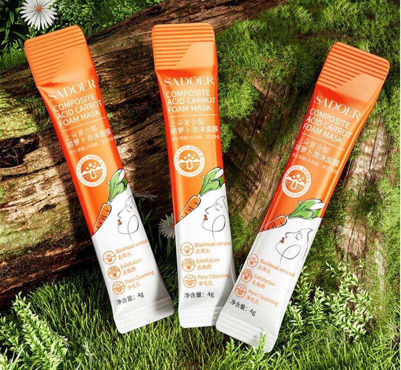 Бульбашкова маска SADOER з екстрактом моркви допоможе зробити шкіру чистою, без чорних точок і запалень. Маска містить екстракт моркви зволожує, пом'якшує та активно вітамінізує шкіру. Активні компоненти: Гіалуронова кислота; Алантоїн; екстракти Моркви, Гамамелісу, Центелли азіатської, Зеленого чаю, Троянди та Ромашки. Такий склад допомагає покращити загальний стан шкіри, зволожити шкіру, зменшити почервоніння та чорні точки, зняти подразнення, підвищити тонус та пружність. Маска глибоко очищує пори і зволожує шкіру, видаляє залишки макіяжу, позбавляє від чорних точок, покращує колір обличчя, надає шкірі гладкість. Спосіб застосування: маска рівномірно наноситься на очищену суху шкіру. Краще уникати області навколо очей і рота. Після того як утворюються бульбашки можна помасажувати шкіру похлопуючими рухами подушечок пальців. Засіб змивається через 10-15 хвилин.