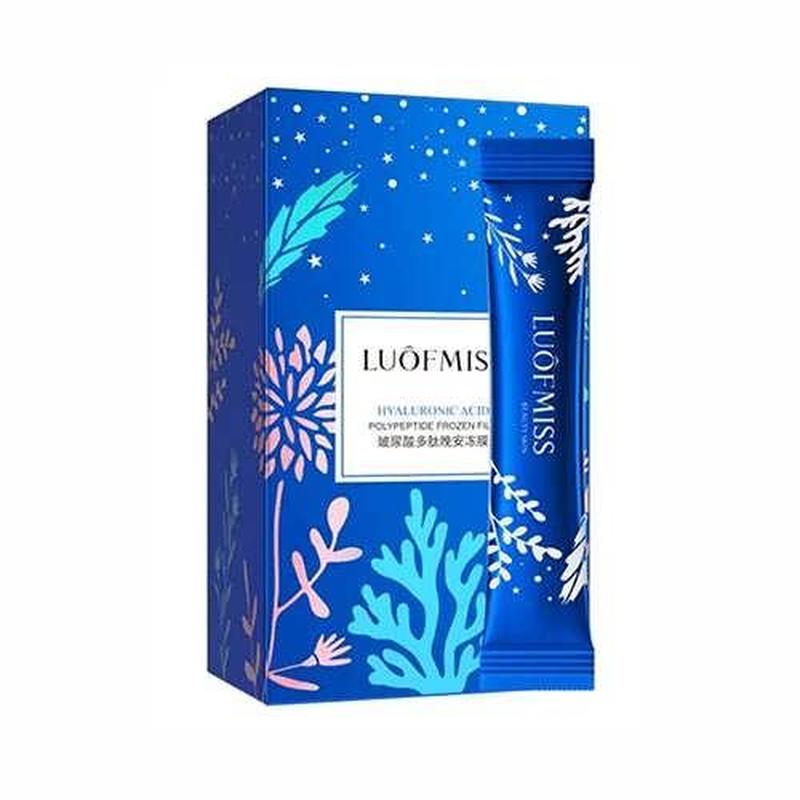 Маски для обличчя Luofmiss Набір масок для обличчя Luofmiss Hyaluronic Acid Polypeptide Frozen Film - це ідеальний спосіб надати вашій шкірі свіжості і здорового сяйва. Кожна маска містить гіалуронову кислоту та поліпептиди, які глибоко зволожують і пом'якшують шкіру, роблячи її молодою і сяючою. Основні переваги: Зволоження і підтримка шкіри: Гіалуронова кислота зволожує шкіру і підтримує її природну бар'єрну функцію. Підвищення еластичності: Поліпептиди сприяють підвищенню еластичності шкіри, роблячи її більш пружною. Боротьба зі зморшками: Регулярне використання масок допомагає зменшити вигляд зморшок і дрібних ліній. Природний і безпечний склад: Маски містять природні інгредієнти, які підходять для різних типів шкіри, включаючи чутливу. Легка і приємна текстура: Текстура масок дозволяє їм легко розподілятися і добре вбиратися, не залишаючи жирної плівки. Зручна упаковка: Кожна маска упакована окремо, що робить її зручною для використання в подорожах або вдома. Сяюча і молода шкіра: Після використання масок в