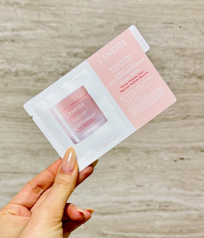 Новий фірмовий пробник, 2 мл Дайте шкірі імпульс під час сну за допомогою Laneige Bouncy & Firm Sleeping Mask. Ця маска для обличчя Laneige призначена для наповнення і відновлення шкіри, покращуючи тьмяність і зменшуючи появу зморшок. Розроблена із текстурою сорбету, що тане, і капсулами з гідроенергією, маска допомагає утримувати вологу протягом 24 годин із освіжаючим фінішом, а також пропонує шовковисте сенсорне нанесення. Комплекс Peony & Collagen Complex™ надає переваги розгладженню, щоб пом’якшити вигляд тонких зморшок, водночас зберігаючи шкірний бар’єр для міцнішого та пружнішого вигляду.