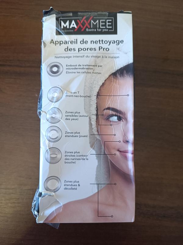 Прилад для очищення шкіри Maxxmee Pore Cleaner. Новий. Принцип упаковка. Засіб для очищення обличчя MaxxMee Pore Cleaner Pro, використовувався один раз на 5 хвилин. Технічні характеристики (джерело emag): видаляє забруднення за допомогою сучасної технології всмоктування швидко, ефективно та водночас делікатно. 6 різних аксесуарів і 3 рівні інтенсивності дозволяють оптимально використовувати для кожної зони обличчя і для кожного типу шкіри. Крім того, ви можете використовувати насадку для алмазної мікродермабразії для підтримки природної регенерації шкіри: вона видаляє омертвілі клітини шкіри та лусочки, а підшкірна тканина може утворювати нові клітини шкіри, еластин і колаген. Простота бездротового використання та максимальний контроль програм завдяки чіткому світлодіодному дисплею забезпечують особливо просту, але також безпечну маніпуляцію вдома - перетворення ванної кімнати на салон краси!