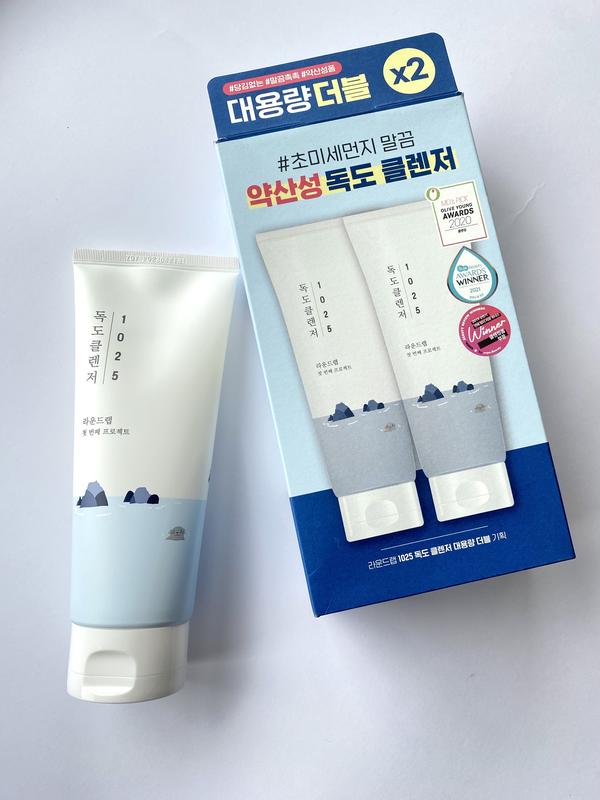 Вигідніше брати 200ml і її вистачить більше ніж на пів року (особисто нею користуюсь вона добре піниться і не сушить шкіру ) Слабокислотна пінка для вмивання з морською водою ROUND LAB 1025 Dokdo Cleanser підходить для делікатного очищення навіть чутливої та сухої шкіри. М’яка та насичена пінка видаляє всі забруднення, залишки макіяжу та мікропил, не провокує появу сухості та стягнутості, зберігає шкіру зволоженою навіть після вмивання. Пінка має нейтральний рН 5-6, м’яко впливає на поверхню шкіри та захищає від агресивного впливу проточної води. Засіб також надає знезаражуючу та заспокійливу дію, допомагає у боротьбі із запаленнями та почервонінням. Основні компоненти: Комплекс з морської води та трьох видів гіалуронової кислоти створює на шкірі невидимий бар’єр, що перешкоджає випару вологи. Пантенол, алантоїн, церамід NP, олія ромашки заспокоюють, покращують бар’єрні функції, нормалізують гідроліпідний баланс, захищають від зневоднення. За очищення відповідають м’які та безпечні ПАР. Нагорода Hwahae Beauty Awards 2018 3 місце серед пінок для вмивання. Нагорода Hwahae Beauty Awards 2019 2-е місце серед пінок для вмивання. Переможець серед пінок для вмивання в Unpa Beauty Winners першої половини 2019 року.