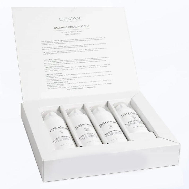 ЕРИТРОДЕРМАЛЬН ДЕТОКСИФІКУЮЧА КАРБОКСИТЕРАПІЯ З МАТЧА CALAMINE GRAND MATCHA 1. СЕТ НА 2-3 ПРОЦЕДУРИ Об'єм: 20мл, 20мл, 20мл, 20мл 2. сет на 15-22 процедури Об'єм: 150мл, 150мл, 150мл, 100мл РЕКОМЕНДОВАНИЙ КУРС 3-10 ПРОЦЕДУР З ІНТЕРВАЛОМ 1 ТИЖДЕНЬ. Делікатна детоксифицирующая зволожуюча карбокситерапія для підвищення імунітету шкіри, корекції атопічних дерматозів, висипань, зниження чутливості шкіри, запобігання накопичення надлишкового себума. Матча (пудра зеленого чая) – традиционный чай японской чайной церемонии, полученный из 100% натуральных экологически чистых чайных листьев. Способствует улучшению микроциркуляции и интенсивному выведению токсинов, выравнивает тон и препятствует раннему старению кожи. Екстракт сакури - джерело антиоксидантів, стимулює неоколлагенез, відбілює і заспокоює роздратовану шкіру, надаючи їй м'якість, оживляючи її. Каламин – мінерал, рекомендований в терапевтичних програмах FDA для атонічної, куперозної шкіри з акне, розацеа та себореєю. ПОКАЗАННЯ ДО ЗАСТОСУВАННЯ: Фото - і биостарение Тьмяна асфиктическая шкіра зі зниженим тургором Акне і пост-акне Розацеа, купероз, атопічні дерматози Висипання нижньої третини обличчя Гіперкератоз, псоріаз з гіперкератозом. КРОК 1 КИСЛОТНИЙ ГЕЛЬ Препарат наноситс віялової пензлем на обличчя, шию і зону декольте. Время экспозиции – 1-3 минуты. Не допускать высыхания геля на лице. Не смывая препарат, приступить к следующему шагу. ⠀ КРОК 2 ДЕТОКС АКТИВАТОР Нанести гель веерной кистью поверх кислотного геля, распределить по обрабатываемой зоне. Время экспозиции 12 минут. В процессе проведения реакции можно дополнительно распределять смесь по обрабатываемой зоне. По окончании экспозиции смыть водой, используя спонжи. ⠀ КРОК 3 БАЛАНСИРУЮЩИЙ БУСТЕР С МАТЧЕЙ Нанести мист толстым слоем на лицо, шею и зону декольте. Провести легкий массаж. Время экспозиции – 15 минут. Смыть водой, используя спонжи. ⠀ КРОК 4 МАТИРУЮЩИЙ КРЕМ SPF 25 Нанести крем в качестве завершающего этапа.