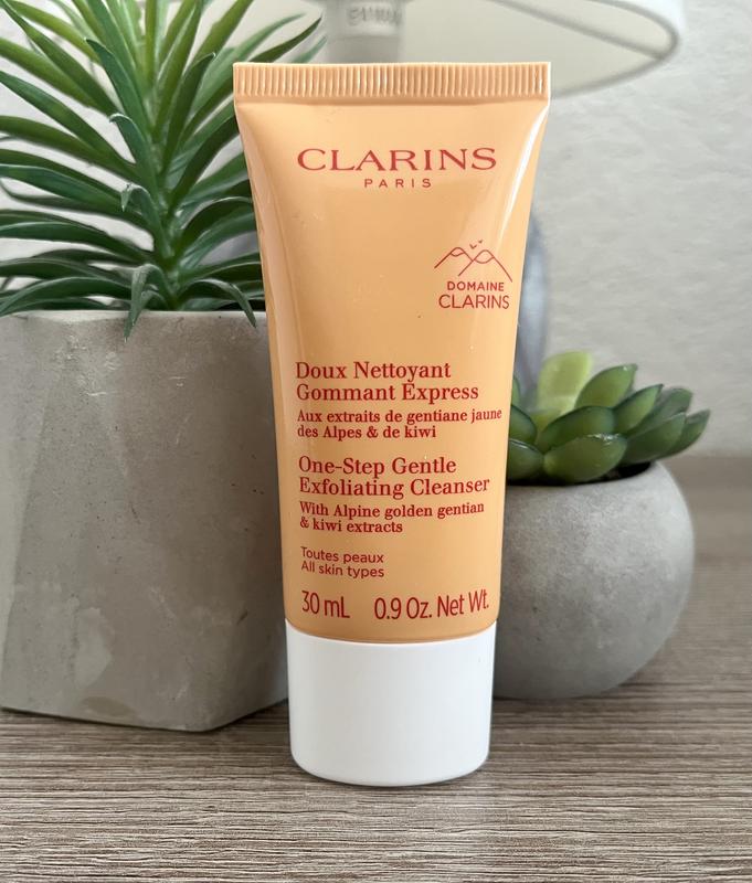 Clarins One-Step Gentle Exfoliating Cleanser відлущуючий засіб з рослинними екстрактами та ківі 30мл🧡 Термін придатності до 2029р✅ . Domaine Clarins One-Step Gentle Exfoliating Cleanser від бренду Clarins підходить навіть для щоденного використання, чудово видаляє макіяж та будь-які забруднення. Його формула сповнена органічними екстрактами, які мають різні ефекти, а їх комбінація забезпечує ніжність та м'якість епідермісу, помітні одразу. Ківі наповнює енергією та сяйвом, комбінація меліси і тирличу золотистого заспокоює та пом'якшує, морінга дарує по-справжньому глибоке очищення, при цьому зберігаючи природний баланс вологи, а мильнянка відповідає за створення ніжної піни. Регулярне використання засобу допомагає досягти ідеальної гладкості та однорідності епідермісу, зменшити прояви подразнень і повернути сяйво. Він підходить для будь-якого типу шкіри, навіть реактивної та чутливої. Особливості Clarins Domaine Clarins One-Step Gentle Exfoliating Cleanser: - м'який делікатний засіб для очищення шкіри; - надає якісну ексфоліацію; - не дряпає та не пошкоджує епідерміс; - формула містить велику кількість органічних компонентів; - тандем золотого тирличу і меліси заспокоює подразнення та пом'якшує; - для сяйва у засобі присутній екстракт ківі; - морінга допомагає краще очищати епідерміс та обмежує наступне налипання забруднювачів; - мильнянка сприяє формуванню піни для ніжного очищення; - забезпечує еластичність епідермісу; - добре працює на будь-якому типі шкіри.