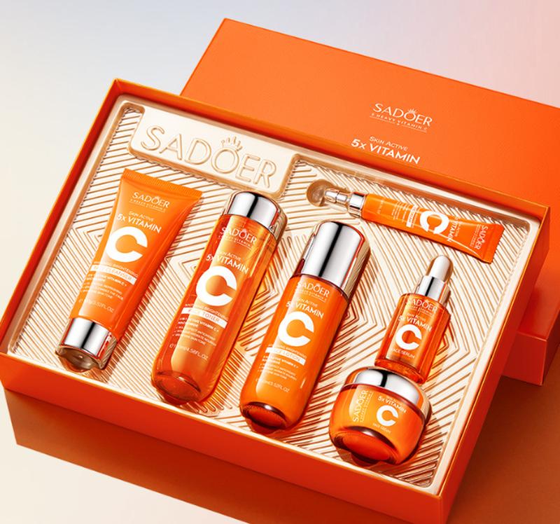 Подарунковий набір 6 в 1 по догляду за шкірою обличчя sadoer skin active 5 x vitamin