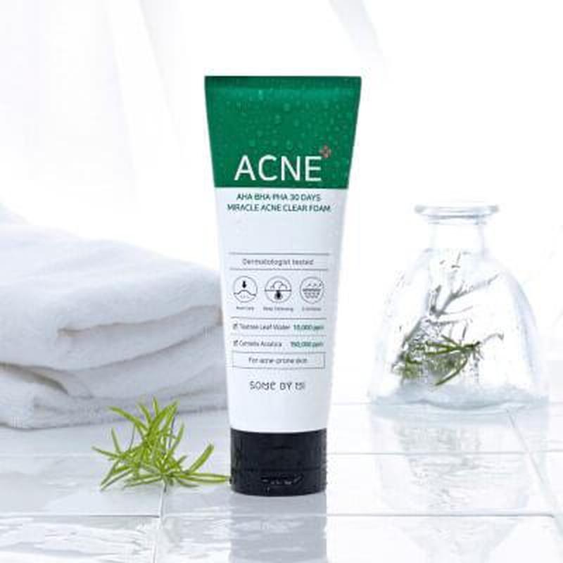 Пенка для проблемной кожи с 3 видами кислот SOME BY MI AHA-BHA-PHA 30 Days Miracle Acne Clear Foam 100 ml Пенка на основе AHA, BHA и PHA-кислот, масла чайного дерева, а также комплекса растительных экстрактов подходит также для чувствительной и раздраженной, жирной и комбинированной кожи. Ключевой компонент пенки - экстракт центеллы азиатской , который обладает мощными восстанавливающими свойствами, а также способствует омолаживанию кожи. Центелла азиатская, а также изоляты, полученные экстрагированием из неё (азиатикозиды, азиатиковая кислота, мадекассовая кислота), оказывают противовоспалительное и заживляющее действие, способствует восстановлению кожи, стимулирует синтез коллагена и восстанавливает активность фибропластов, активизирует выработку гиалуроновой кислоты. Благодаря всем этим свойствам, кожа оздоравливается, повышается её упругость и эластичность, разглаживаются морщины. Масло чайного дерева - мощнейший антисептик, оказывает выраженное противовоспалительное, бактерицидное, противогрибковое, противовирусное и ранозаживляющее действие, помогает справиться с любыми воспалениями и раздражениями кожных покровов, в кратчайшие сроки устраняет покраснения и зуд, а также способствует очищению кожи, вытягивая гной из ее пораженных участков. AHA, BHA и PHA-кислоты способствуют отшелушиванию омертвевших клеток, растворяют в порах сальные пробки, помогают в борьбе с черными точками и акне, успокаивают кожу, делают её более чистой, гладкой, ухоженной. При регулярном использовании пенки, а также уходовых средств линии заметно улучшается состояние кожи: уменьшается количество воспалений, осветляются постакне, поры стягиваются, выравнивается цвет лица. Способ применения : Нанести пенку на кожу, распределить по поверхности лица, мягко помассировать, затем тщательно смыть тёплой водой.