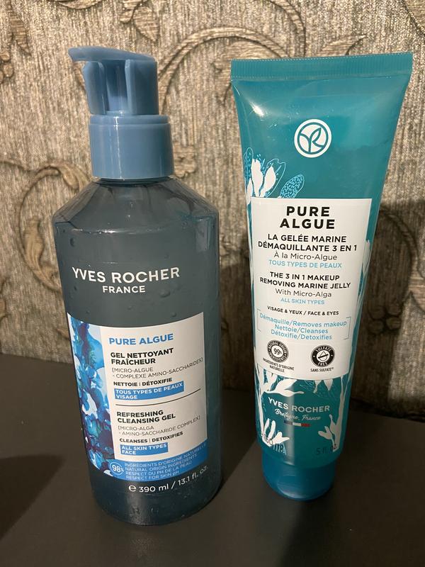 Желе демакіяж Видаляє макіяж та очищує шкіру обличчя та контуру очей, насичує шкіру киснем 150 мл Зволожувальний гель з амінокислотами та сахаридами – ключовими компонентами природного фактора зволоження шкіри, отриманих з екстракту органічних мікроводоростей, делікатно видаляє забруднення, зволожує та додає сяяння. Екстракт органічних мікроводоростей насичує клітини шкіри киснем, зміцнює захисний бар’єр та захищає від оксидативного стресу, що призводить до тьмяності, сухості та передчасної появи вікових змін. Шкіра залишається чистою, м’якою та виглядає більш доглянутою. Текстура: гель з легкою піною. Тип шкіри: нормальний, комбінований. Рекомендації щодо використання: наносьте масажними рухами на вологу шкіру обличчя вранці та ввечері, потім ретельно змийте водою. Уникайте контакту з очима.