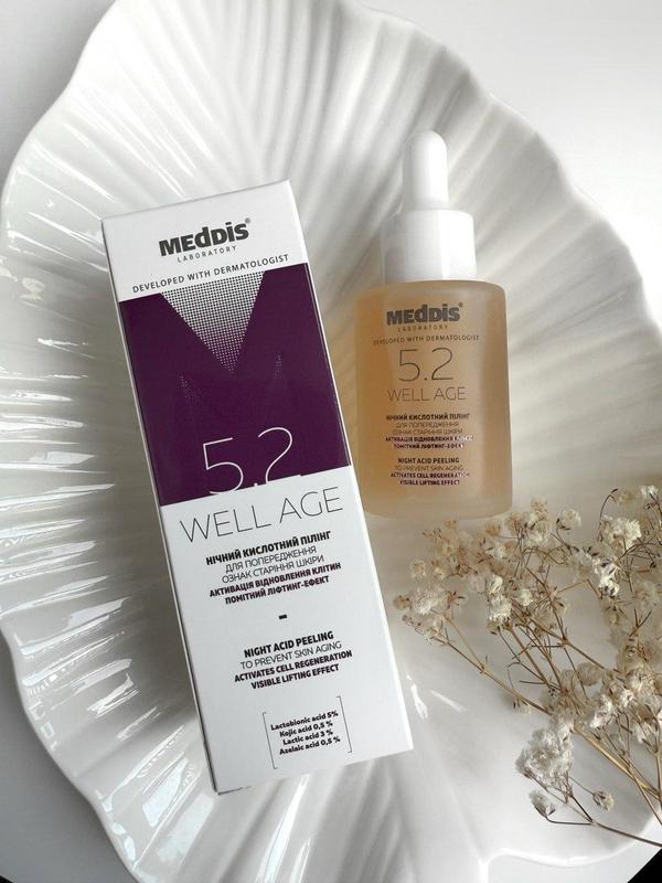 Інноваційний засіб для нічного догляду, що забезпечує делікатне відлущування та стимулює природні процеси оновлення шкіри. Унікальна формула поєднує активні інгредієнти, які позитивно впливають на текстуру, тонус та загальний стан шкіри. Завдяки цьому продукт допомагає зменшити нерівності, зменшити прояви пігментації та ознаки старіння. Призначення: Ексфоліація та ліфтинг шкіри в нічний час. Переваги: - Делікатна ексфоліація; - Освітлення епідермісу; - Помітний ліфтинг-ефект; - Зволоження та пом'якшення шкіри; - Активізація відновлення клітин; - Регуляція виділення себуму; - Підвищення тонусу шкіри; - Підходить при куперозі та пігментних плямах. Спосіб застосування: Наносити невелику кількість засобу на ніч на очищену шкіру після тонізації, уникаючи зони губ та очей. За потреби після засобу можна наносити нічний крем. Вранці після використання вмитися теплою водою та наносити SPF крем. Використовувати 2-3 рази на тиждень. Застереження: Можлива підвищена індивідуальна чутливість до окремих компонентів. Склад товару: Aqua, alcohol denat., lactobionic acid, glycerin, phytic acid, lactic acid, hydroxyethylcellulose, kojic acid, azelaic acid, sodium hydroxide, phenoxyethanol, methylparaben, propylparaben, 2-bromo-2-nitropropane-1.3-diol, tetramethyl acetyloctahydro-naphthalenes.
