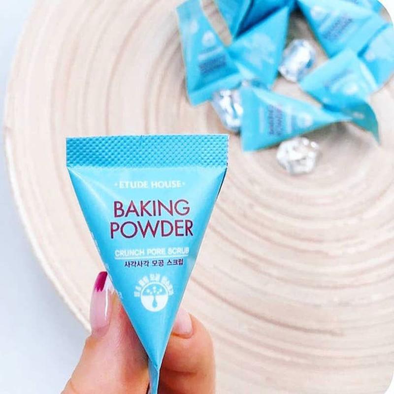 Скраб для лица Etude House Baking Powder Crunch Pore Scrub на 40% состоит из мельчайших крупинок соды и за счет этого эффективно очищает поры от загрязнений, мягко отшелушивает омертвевшие частички кожи, стимулируя клеточное обновление, обеззараживает и оздоравливает тон лица. И при этом скраб приятно холодит кожу! Средство есть теперь и в баночке. наши любимые пирамидки удобно в дорогу,а баночку дома Основные действующие компоненты: Бикорбонат натрия (пищевая сода) - мощный антисептик, помогает смягчить и интенсивно очистить кожу. Активно використовується в пілінги і скраби завдяки вираженій отшелушивающей здібності, знімає роздратування. Наявність нейтрального pH і хімічних властивостей забезпечують універсальність використання - сода підходить для шкіри будь-якого типу. Микроскристаллическая целюлоза - натуральний компонент, який сприяє глибокому, але при цьому делікатного очищення пор від забруднень, ороговілих частинок, а також абсорбує надлишки шкірного жиру, надаючи шкірі чистоту і матовість. Підходить для нормальної, жирної, комбінованої і проблемної шкіри. Спосіб застосування: взяти не багато скрабу помасажуйте, особливу увагу приділіть T-зоні і проблемних ділянок. Вмийтеся теплою водою. Рекомендується використовувати 1-2 рази в тиждень. Цена за 1 пирамидку.