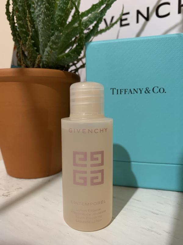 Нежная консистенция Givenchy L’Intemporel Youth Preparing Exquisite Lotion вмещает в себя новейшие разработки в косметической промышленности. Лосьон является завершающим этапом очищения и стартом для ухаживающей сыворотки и крема. Благодаря легкой консистенции лосьон быстро поглощается, дарит молодой подтянутый вид, а цвет лица получает равномерный тон и сияние. Подходит для всех типов кожи. Активные компоненты: запатентованный комплекс Timeless Blend - стимулирует синтез коллагена и защищает от окислительных процессов, благодаря чему слои кожи становятся более плотными; водорастворимый компонент, производный от витамина Е, - способствует регенерирующим свойствам и оказывает антиоксидантное действие; инкапсулированные полифенолы – обладают омолаживающим действием за счет защиты клеток от воздействия свободных радикалов. Стимулируют синтез коллагена и ускоряют регенерацию кожи. Увлажняют и питают, убирают пигментные пятна и покраснения; низкомолекулярная гиалуроновая кислота - выравнивает морщины и тон лица, наполняет кожу влагой.