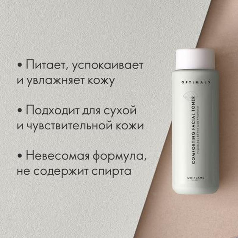Дополни свою рутину этим тоником. Невесомая текстура без спирта успокаивает и питает кожу. Содержит витамины B3 и B5 из овса, которые оказывают успокаивающее действие. Эффект 5 в 1: тонизирует, смягчает, успокаивает, питает и увлажняет кожу. Мгновенно успокаивает сухую или чувствительную кожу Невесомая формула, не содержащая спирта Описание Дополните свой ежедневный уход успокаивающим тоником для лица. Он прекрасно очищает кожу, а благодаря не содержащей спирта невесомой текстуре легко удаляет загрязнения и следы макияжа. Рекомендуется всем, чья кожа нуждается в дополнительном увлажнении. Содержит в составе питательные вещества, которые успокаивают кожу, положительно влияя на нее. Подойдет для использования после любого средства для умывания. Питает, успокаивает и увлажняет кожу Подходит для сухой и чувствительной кожи Невесомая формула, не содержит спирта Нанеси немного тоника на ватной диск, и протри им сухую кожу лица, избегая участков вокруг глаз. Не втирай. Для улучшения успокаивающего эффекта потри тоник в холодильнике перед применением.