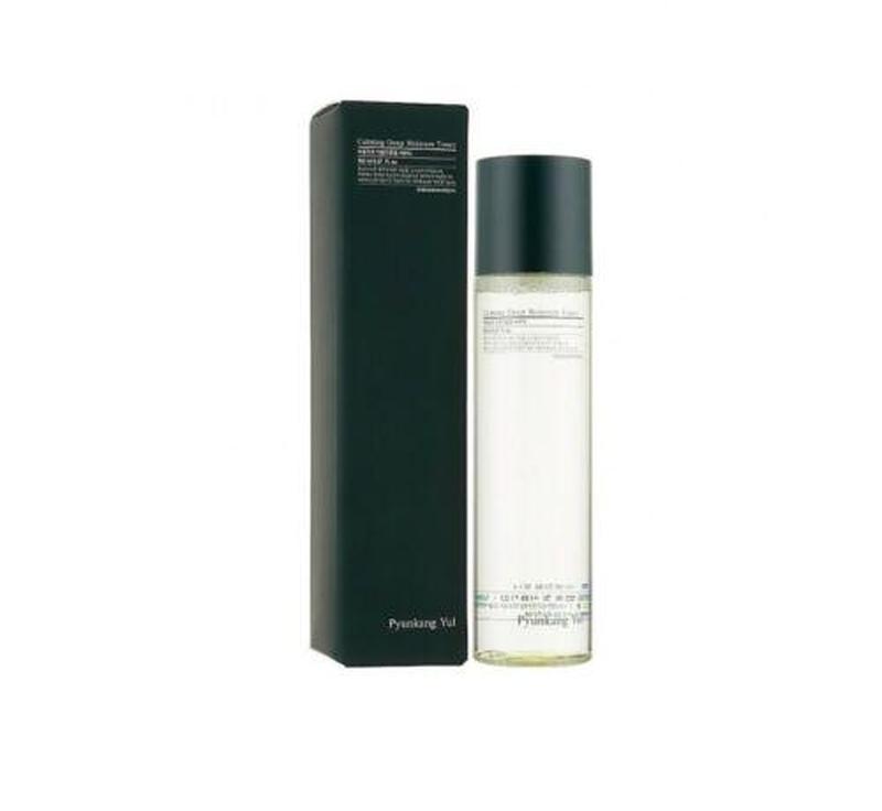 Заспокійливий тонер для обличчя Pyunkang Yul Calming Deep Moisture Toner глибоко зволожує шкіру, дбайливо пом'якшує, заспокоює, живить, тонізує і звужує пори. Підходить для щоденного застосування. Основні діючі компоненти: Екстракт кори білої верби регулює вироблення себума, м'яко розчиняє забруднення і чорні точки, звужує пори, забезпечує протизапальний ефект. Глюконолактон має зволожуючі властивості, вирівнює рельєф, захищає від вільних радикалів, безпечний для чутливої шкіри. Екстракт чайного дерева і екстракт жимолості японською допомагають знімати роздратування, мають антибактеріальні, загоювальні і заспокійливі дії. Комплекс 5-ти видів гіалуронової кислоти глибоко зволожує, допомагає відновлювати водний баланс і утримувати вологу в клітинах шкіри, усуваючи лущення і сухість. Екстракт центели азійської допомагає швидко зняти запалення і роздратування, прискорює процес загоєння і має легку омолоджуючу дію. Спосіб застосування : після умивання нанесіть достатню кількість тонера на долоні, легкими масажними рухами "вбийте" тонер від внутрішньої сторони обличчя до зовнішньої до повного вбирання. В якості тонер-маски локального нанесення : нанесіть тонер на ватний диск, а потім зробіть маску на обличчя, зніміть ватні диски через 5-10 хвилин.