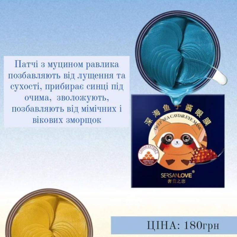 Патчі під очі з муцином равлика та екстрактом ікри ікри. Опис на фото