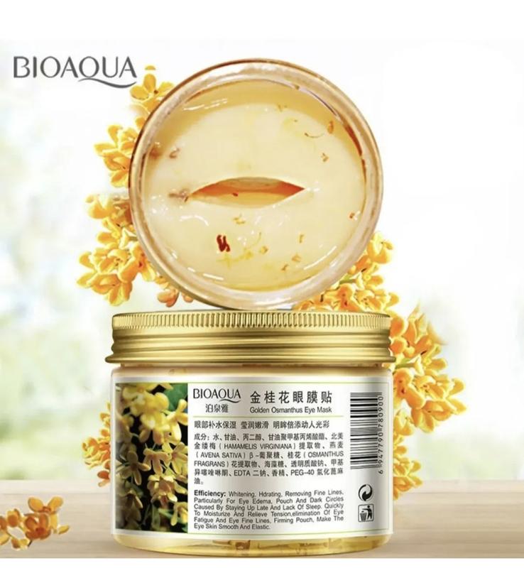 Патчи-маска для кожи вокруг глаз Bioaqua Poquan Ya Golden Osmanthus Eye Mask с золотым османтусом, 80 шт ✔️Средство подходит для всех типов кожи. Благодаря формуле с османтусом, коллагеном и комплексом растительных экстрактов продукт обеспечивает эффективный уход: ✔️восстанавливает и успокаивает, устраняет отеки и темные круги; ✔️увлажняет и питает, придает естественное сияние; ✔️разглаживает морщины, возвращает упругость и эластичность. Как действует? Благодаря округлой форме патчи насыщают активными ухаживающими веществами не только нижнее, но и верхнее веко. Эссенция легко впитывается, мгновенно действует, дарит заметный результат. При регулярном применении эффект скапливается — кожа вокруг глаз становится ухоженной.
