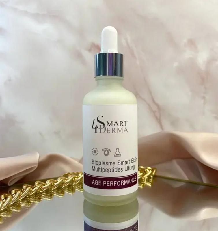 BIOPLASMA SMART ELIXIR MULTIPEPTIDES LIFTING 50 ml Інтелектуальна концентрована сироватка-еліксир забезпечить молодість і красу вашій шкірі, ефективно розгладить тонкі лінії й зморшки. Завдяки вмісту у складі формули біоактивних компонентів, таких як Bioplasma та комплекс пептидів, шкіра набуває пружність, еластичність і гладкість. Гіалуронова кислота в поєднанні з омега-насиченою лляною олією забезпечує чудове зволоження, розгладжує шкіру, наповнюючи молодістю і здоров’ям. Показання: • Щоденний безперервний режим догляду за шкірою для уповільнення старіння без радикальних заходів. • Запобігання появі динамічних та статичних зморшок. • Фото- тахроностаріння. • Тьмяний колір обличчя. • Догляд за шкірою після використання інвазивних методик, контурної. пластики, пластичної хірургії. • Гіперпегментація. • Знижений тонус шкіри. • Вікова шкіра. Активні компоненти: гіалуронат натрію, Bioplasma™ FA, Hyalurosmooth PW LS 8997, Hydagen® Aquaporin, CAPS2GO™ firming, Антарктицин, ацетил тетрапептид-2, Replexium, лляне масло, Easyliance, лізин, серин, валін, пантенол, ацетил гексапептид-1, лецетин, масла ши та авокадо, Agefinity™, біотин трипептид-1, олігопептиди, поліпептиди, деекапептид-9, Argireline®.