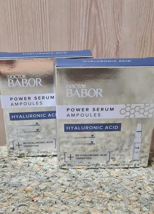 мини набор 3 ампулы. 490 грн. отдельно 1 ампула 170 грн Обеспечить интенсивное увлажнение и предотвратить дегидратацию кожи помогают ампулы с гиалуроновой кислотой от бренда Doctor Babor. Формула средств создана на основе 8-фракционной гиалуроновой кислоты и трипептидов. Активные компоненты стимулируют выработку коллагена, эластина и гиалуроновой кислоты, обеспечивая заполнение пустот и тонких линий. Продукты имеют легкую консистенцию, которая проникает в ткани на более глубокие уровни и обеспечивает пролонгированное действие ампул. Особенности Doctor Babor Power Serum Ampoules Hyaluronic Acid: - насыщает влагой и сохраняет ее; - средство обогащено разномолекулярной гиалуроновой кислотой; - предупреждает дегидратацию и шелушение; - хорошо абсорбируется в структуру кожи; - укрепляет защитный барьер; - минимизирует видимость морщин; - восстанавливает естественное сияние; - повышает упругость и эластичность; - нормализует работу сальных желез; - замедляет процесс старения.