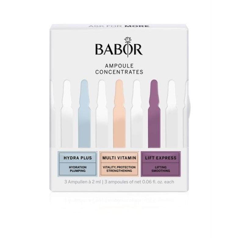 Ідеальний набір, щоб спробувати найпопулярніши ампули Babor. У наборі: 1. Hyaluronic Acid Power Serum Ampoule - сироватка-ампула з гіалуроновою кислотою (2мл) 2. Vitamin C Power Serum Ampoule – сироватка-ампула з вітаміном C (2мл) 3. Peptides Power Serum Ampoule - сироватка-ампула з пептидами (2мл) Ампула-сироватка з гіалуроновою кислотою поєднує в собі 8 різних типів гіалуронової кислоти з трипептидом, що стимулює утворення власної гіалуронової кислоти. Результат: миттєвий і стійкий зволожуючий ефект, сяючий колір обличчя. Ампула-сироватка з вітаміном C містить 20% стабільного вітаміну C, а також двовимірну гіалуронову кислоту та лінолеву кислоту, ідентичну шкірі, для ідеального рельєфу шкіри. Результат: рівна, сяюча, гладкіша шкіра. Ампула-сироватка з пептидами поєднує 3 біоміметичні пептиди з органічним кремнієм та двовимірною гіалуроновою кислотою. Вони стимулюють фактори зростання EGF та FGF і тим самим сприяють регенерації клітин. Результат: шкіра більш пружна та гладка.