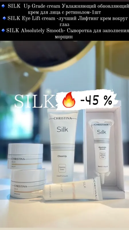 Сыворотка для местного заполнения морщин — это безопасная и быстрая альтернатива ботоксу. Благодаря пластичной текстуре сыворотка как бы «затирает» морщины, выравнивая кожу и подготавливая её к нанесению остального ухода или декоративного макияжа. Рекомендуется для использования мужчинам и женщинам с сухой кожей. Активные ингредиенты — Аминомасляная кислота, экстракты портулака и корня женьшеня — антиоксидантные компонент, которые защищают кожу от свободных радикалов и стимулирует обновление кожи. Благодаря им повреждённые участки заживают быстрее, тон кожи становится ровнее, а мелкие морщины разглаживаются из-за усиленной выработки коллагена и эластина. — Экстракт центеллы азиатской оказывает антибактериальное действие, благодаря которому воспалённые участки кожи заживают быстрее. — Липиды куколок тутового шелкопряда восполняет недостаток естественных липидов кожи, восстанавливает гидролипидную мантию, которая защищает кожу от бактерий, УФ-излучения и обезвоживания. Сыворотка является частью линейки Silk, которая направлена на уменьшение количества морщин на сухой кожей. Для максимального эффекта рекомендуется использовать всю серию. ПО СКИДКЕ ТАКЖЕ ЕСТЬ 1шт Шёлк Апгрейд крем для лица и Лифтинг-крем вокруг глаз
