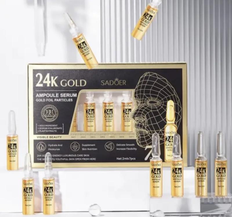 Сироватка для обличчя в ампулах sadoer з частинками золота 24к та гіалуроновою кислотою, 7...