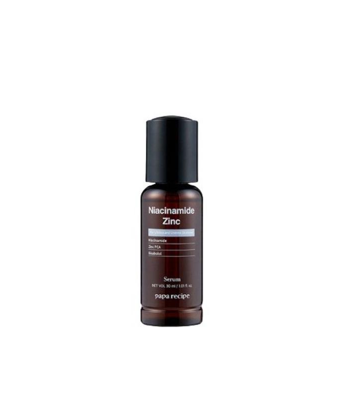 Papa Recipe Niacinamide Zinc Serum — зволожувальна сироватка для освітлення пігментації та покращення загального тону шкіри. Також працює як антиоксидант, візуально звужує пори та зменшує глибину зморшок. Сироватка містить всього 16 компонентів й не містить ароматизаторів, аби запобігти подразненням та зменшити навантаження на шкіру. Має шовковисту гелеву текстуру, що швидко вбирається та залишає шкіру зволоженою. Одразу після нанесення може бути невелике відчуття липкості, яке згодом повністю зникає. Сироватка призначена для тьмяної та пігментованої шкіри, а також шкіри з надмірною продукцією себуму та розширеними порами у зневодненому стані. Основні компоненти: Ніацинамід (5%) — покращує тьмяний нерівний тон шкіри, запобігає накопиченню пігменту в епідермісі, підвищує бар’єрну силу та зволоженість шкіри, балансує надлишок шкірного сала, зменшує видимість розширених пор, а також допомагає пом’якшити негативний вплив факторів зовнішнього середовища. Альфа-бісаболол — потужний протизапальний інгредієнт, надає депігментуючу дію. Цинк PCA (0,05%) — нормалізує вироблення шкірного сала, обмежує розмноження бактерій, що провокують акне, а також перешкоджає руйнівним ферментам у шкірі, запобігаючи появі зморшок. Спосіб застосування: Після очищення та тонізації нанесіть невелику кількість (вистачить 2-4 крапель) сироватки на обличчя та акуратно розподіліть по шкірі до повного вбирання