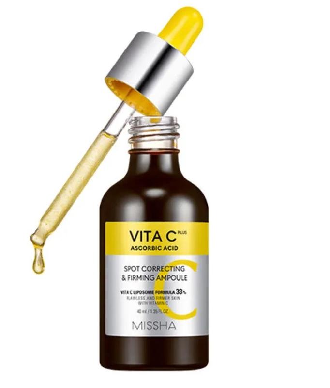 23,03,2026 MISSHA Vita C Plus Spot Correcting Firming Ampoule Сироватка з вітаміном C для освітлення й омолодження Пробник MISSHA Vita C Plus Spot Correcting & Firming Ampoule Виробник: Missha Вік: 25+ Тип шкіри: комбінована, нормальна, суха, вікова Дія: відновлення, вирівнювання тону, омолодження, живлення, підтягування, запобігання зневодненню, розгладжувальний ефект, регенерація, збереження пружності, зволоження, просвітленню Об'єм: 10 мл,без коробки, з набору Зміцнювальна сироватка, яка завдяки високому вмісту вітаміну C глибоко живить, відновлює й просвітлює шкіру. Інтенсивно зволожує, надає шкірі пружність і еластичність. Стимулює процеси вироблення колагену, необхідного для відновлення та регенерації епідермісу. Допомагає позбутися пігментації та постакне, запобігає появі нових плям. Засіб із ніжною консистенцією миттєво вбирається й забезпечує най тьмянішою і найвідв'язальнішою шкірі яскраве сяйво. У складі міститься ліпосомна формула з вітаміном C для поліпшення еластичності шкіри та відновлення клітин шкіри, що дає змогу досягти потужного антивікового ефекту. Етил-аскорбінова кислота (3-0-Ethyl Ascorbic acid 25%) — стабільна форма вітаміну С, яка не піддається впливу температур і повітря. Гальмує процес вироблення меланіну, що забезпечує потужний ефект освітлення. Сприяє синтезу колагену, має антиоксидантні та протизапальні властивості. Токоферолу ацетат (Вітамін Е) — вітамін молодості, який сприяє регенерації й оновленню клітин. Захищає клітини від окиснення й запобігає утворенню вільних радикалів. Зволожує й допомагає позбутися лущення, сприяє загоєнню ушкодженої шкіри, згладжує заломи та підтягує овал обличчя, нормалізує гідроліпідний баланс. Гідролізований колаген — відновлює пружність і еластичність, перешкоджає «обвисанню» шкіри та появі мережі зморщок. Покращує зовнішній вигляд, еластичність і зменшує подразнення. Спосіб застосування: нанести на очищене та тонізоване обличчя кілька крапель засобу та легкими згладжувальними рухами розподілити. Glycyrrhiza Uralensis (Licorice) Root Extract, Hippophae Rhamnoides Water, Ascorbic Acid, Dipropylene Glycol, Ethoxydiglycol, 1,2-Hexanediol, Tranexamic Acid, Sodium Citrate, Water, Chlorella Vulgaris Extract, Glucose, Choleth-24, Butylene Glycol, Fructooligosaccharides, Fructose, Tromethamine, Caprylyl Glycol, Arbutin, Niacinamide, Methyl Gluceth-10 Ethylhexylglycerin, Panthenol, Melia Azadirachta Flower Extract, Melia Azadirachta Leaf Extract, Xanthan Gum, Citrus Aurantium Dulcis (Orange) Peel Oil, Curcuma Longa (Turmeric) Root Extract, Ocimum Sanctum Leaf Extract, Sodium Hyaluronate, Citric Acid, Disodium EDTA, Citrus Grandis (Grapefruit) Peel Oil, Glycerin, Corallina Officinalis Extract, Eucalyptus Globulus Leaf Oil, Lavandula Angustifolia (Lavender) Oil, Dextrin,Theobroma Cacao (Cocoa) Seed Extract, Caprylic/Capric Triglyceride, Hydrolyzed Collagen, Hydrogenated Lecithin, Ceramide NP, Hyaluronic Acid, Tocopherol, Allantoin, Glyceryl Glucoside, Acetyl Hexapeptide-8, Hydrolyzed Hyaluronic Acid, PVP, Pentylene Glycol, Palmitoyl Tripeptide-5, Laurdimonium Hydroxypropyl, Hydrolyzed Wheat Protein, Phytosterols, Fullerenes, 3-O-Ethyl Ascorbic Acid, Ascorbyl Glucoside, Limonene, Linalool.