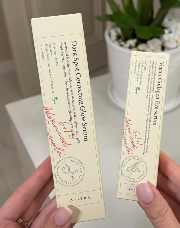 Прорви 2025 года! Бренд Axis-Y - это настоящий пятновыводитель для лица, а его бестселлерами являются два топовых средства. 1. Сыворотка для коррекции темных пятен от бренда Axis-Y поможет вам выровнять тон лица и подарить ему здоровый вид. Благодаря насыщенной формуле мощный продукт эффективно борется с пигментными пятнами, постакне и другими недостатками. Кроме того, сыворотка способствует обновлению и восстановлению поврежденных участков и придает коже сияние. Особенности Axis-Y Dark Spot Correcting Glow Serum: - сужает поры, освещает и успокаивает кожу; - ниацинамид 5% стимулирует синтез коллагена; - сквалан смягчает эпидермис, защищает от потери влаги; - экстракт рисовых отрубей уменьшает воспаление и раздражение; - календула обладает противовоспалительными и ранозаживляющими свойствами; - экстракт папайи насыщает клетки кожи витаминами А и С; - экстракт облепихи питает, регенерирует и уменьшает купероз; - благодаря легкой гелевой консистенции быстро впитывается, не оставляя липкости; - встроенный дозатор позволяет легко наносить нужное количество продукта; - не содержит парабенов, синтетических веществ и искусственных красителей. 50мл-880грн. 2. Axis-Y Vegan Collagen Eye Serum- веганская осветляющая сыворотка под глаза с коллагеном. • освещает, убирает темные круги под глазами; • уменьшает видимость морщин, убирает отеки; • легкая текстура, не оставляющая липкости и жирности. Цена 890грн. Производитель: Южная Корея Возраст: 18+ Тип кожи: все типы