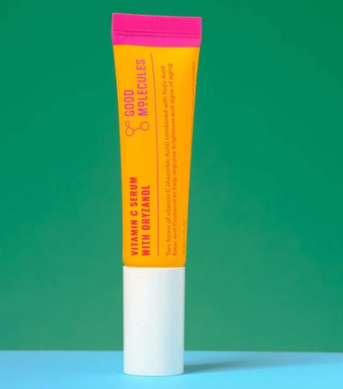 Good Molecules - Vitamin C Serum with Oryzanol - сироватка з шовковистою і легкою текстурою, яка ефективно освітлює пігментацію і вирівнює тон шкіри, одночасно борючись з першими ознаками старіння і зменшуючи окислювальний стрес. Комплекс компонентів, а саме вітамін С і похідна коєвої кислоти, помітно зменшує пігментні плями, забезпечуючи шкіру дозою антиоксидантів і стимулюючи вироблення колагену. Водночас оризанол, компонент із рисових висівок, регенерує пошкоджену шкіру та зволожує її. Доповнює цей комплекс олія марули, яка має живильну та захисну дію. Продукт не містить ароматизаторів, веганський і cruelty free. Активні компоненти: вітамін С - має антиоксидантну дію, стимулює синтез колагену, проявляючи антивікові властивості, освітлює пігментні плями та вирівнює тон шкіри, оризанол - компонент із рисових висівок, знижує активність вільних радикалів, покращує зволоження та регенерацію шкіри, похідна коєвої кислоти - PHA, пригнічує вироблення меланіну, зупиняє утворення нових пігментних плям і освітлює вже наявні, олія марули - огортає шкіру захисним шаром, запобігаючи втраті вологи з епідермісу, живить і регенерує. Дія засобу: зменшує окислювальний стрес, зменшує помітність зморшок, освітлює пігментні плями, надає сяйво, зволожує і живить. Виробник рекомендує засіб для таких типів шкіри та косметичних дефектів: нерівномірний тон шкіри, тьмяна шкіра, пігментація, зріла шкіра. Спосіб використання: Нанести відповідну кількість засобу на шкіру обличчя. Використовувати вранці та/або ввечері. Не забувайте щоранку наносити сонцезахисний крем.
