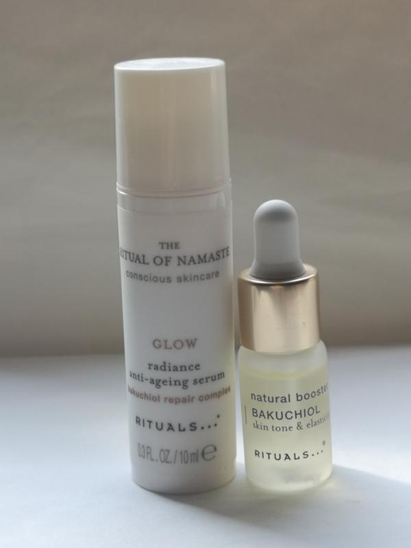 Набір засобів по догляду за обличчям від Rituals Ціна 500 грн. - Сироватка-бустер з бакучиолом RITUALS THE RITUAL OF NAMASTE Bakuchiol Natural Booster Термін придатності: Липень 2025 р. Підкресліть свою природну красу за допомогою потужної 99% натуральної сироватки, яка допомагає покращити та вирівняти тон шкіри. Бакучіол відомий своїми протизапальними та антиоксидантними властивостями. Легка формула на олійній основі швидко вбирається у шкіру. Бакучіол широко відомий як високоефективна натуральна заміна ретинолу в антивікових продуктах, оскільки він допомагає підтримувати еластичність шкіри та стимулює оновлення клітин шкіри. Цей продукт підходить для всіх типів шкіри. - Антивікова сироватка для обличчя Rituals The Ritual Of Namaste Glow Radiance Anti-Ageing Serum, 10мл Термін придатності : Вересень 2025 р. З віком шкірі потрібно більше активних інгредієнтів, які можуть сповільнити появу зморшок та тонких ліній. Отримайте сяйво та боріться з першими ознаками старіння вдень та вночі за допомогою цієї сироватки від The Ritual of Namaste. Завдяки нашому новому культовому комплексу, що відновлює, бакучиол, який допомагає повернути вашій шкірі молодий блиск, мінімізуючи появу тонких ліній і зморшок, одночасно зволожуючи шкіру для додаткового сяйва. 97% інгредієнтів натурального походження, 3% лабораторних для забезпечення текстури та стабільності продукту. Підходить для всіх типів шкіри, включаючи чутливу, перевірено дерматологічно. Обміну, повернення та ТОРГУ НЕМАЄ.