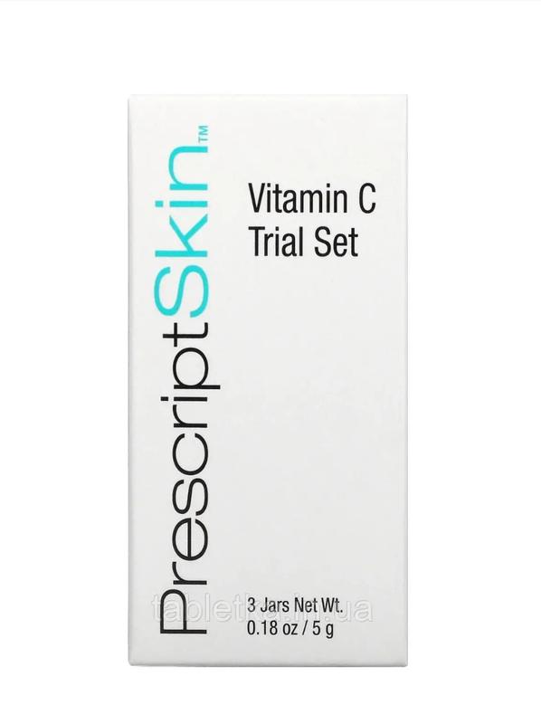 PrescriptSkin набір пробних продуктів .з вітаміном С міні версія: 3 баночки по 5 г (0,18 унції) - Очищувальний засіб з вітаміном С - Сироватка-Ліфтинг з вітаміном С - Зволожувальний крем з вітаміном С Масажними круговими рухами нанести очисний засіб на вологу шкіру. Ретельно змити водою. Нанести сироватку-Ліфтинг з вітаміном С на обличчя і шию. Потім нанести сироватку з вітаміном С. Всі продукти можна наносити зранку та ввечері. Ці продукти містять AHA i BHA кислоти, які можуть посилити чутливість шкіри до впливу сонячного світла. Треба використовувати сонцезахисний засіб і обмежити пребування під впливом сонячного світла впродовж усього періоду використання продуктів з вітаміном С., та ще тиждень після припинення застосування.