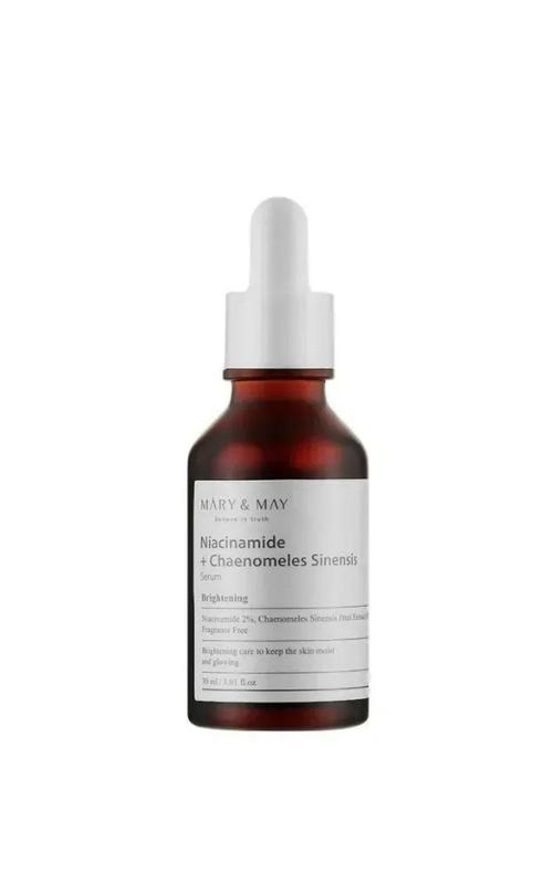 Mary & May Niacinamide + Chaenomeles Sinensis Serum 30ml — освітлююча сироватка для обличчя з ніацинамідом і екстрактом хеномелесу, яка допомагає вирівняти тон шкіри та зменшити пігментацію. 🔹 Активні інгредієнти: ніацинамід — освітлення та регулювання себуму, екстракт хеномелесу — заспокоює та живить 🔹 Дія: освітлення, вирівнювання тону, покращення текстури шкіри 🔹 Підходить для: всіх типів шкіри, особливо тьмяної або з нерівним тоном