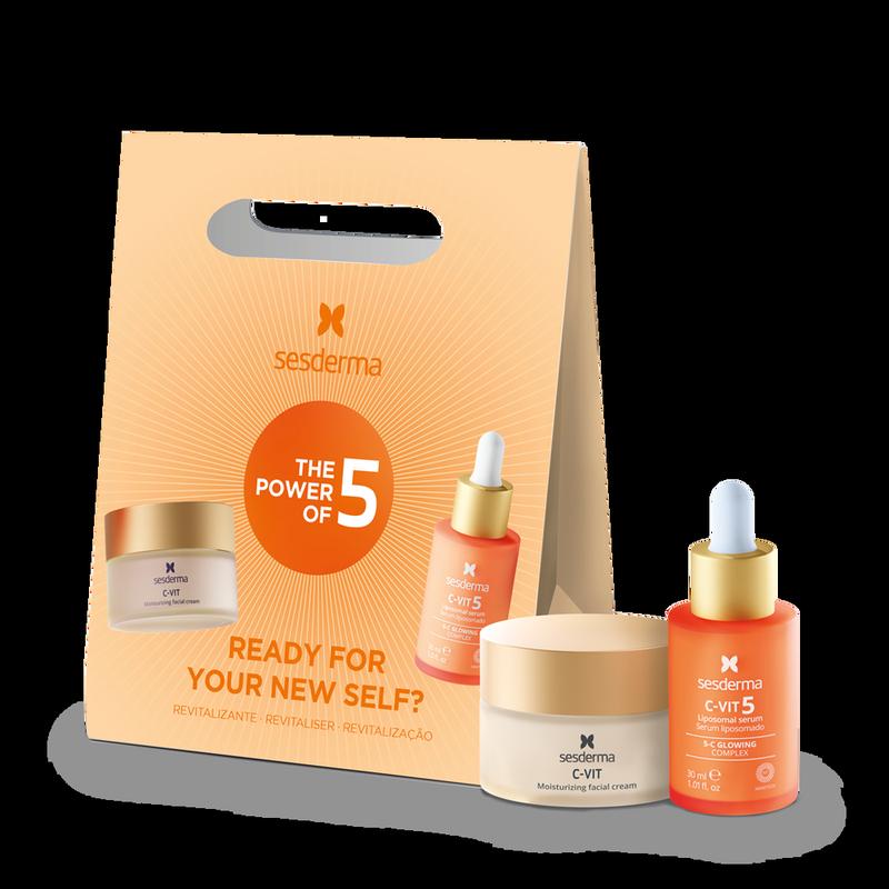 До набору входить: - C-VIT 5 Liposomal Serum (30 мл), - C-VIT Moisturizing Cream (50 мл). Попрощайтеся з тьмяністю та втомою! Цей потужний дует насичує вашу шкіру люмінозністю та життєвою енергією, розгладжуючи зморшки та повертаючи молодість. Ви миттєво побачите, як шкіра стає свіжою, неймовірно яскравою та пружною. Посильте своє природне сяйво у 5 разів завдяки концентрованій антиоксидантній дії, яка захищає шкіру від щоденного стресу та вільних радикалів! - Комплекс помітно вирівнює тон обличчя, усуваючи тьмяність та даруючи шкірі здорове, внутрішнє світіння. - Бореться з пігментацією та є потужною профілактикою старіння, спричиненого сонцем. - Активно збільшує вироблення колагену та еластину, що сприяє зменшенню зморшок і помітно підвищує пружність шкіри. - Нейтралізує ознаки стресу та втоми, залишаючи шкіру відпочилою та свіжою. - Забезпечує тривале та глибоке зволоження завдяки унікальній формулі крему. Активні компоненти Ascorbyl glucoside, sodium ascorbate, ethyl ascorbic acid, magnesium ascorbyl phosphate, trisodium ascorbyl palmitate phosphate, hyaluronic acid та протеоглікани, immediate tightening complex: (caesalpina spinosa fruit extract + kappaphycus alvarezii extract), gotu kola, стабілізований vitamin c (e-vitc), потужний антиоксидантний комплекс "antiox booster system ax+". Переваги - вирівнює тон та запобігає фотостарінню - мінімізує пігментацію шкіри, спричинену старінням - відновлює життєву силу шкіри та робить її гладенькою - боротьба з ознаками втоми та зменшення появи зморшок - підвищує пружність та еластичність шкіри - антиоксидантна дія проти вільних радикалів - глибоко зволожує - має протизапальну дію - надає шкірі сяючого вигляду - розгладжує зморшки Спосіб застосування Вранці та/або ввечері нанесіть 3-4 краплі ліпосомальної сироватки C-VIT 5 на чисту та суху шкіру обличчя та помасажуйте. Далі нанесіть зволожуючий крем для обличчя C-VIT і масажуйте до повного вбирання. Не забудьте як останній крок вашої ранкової рутини нанести сонцезахисний крем. Склад C-VIT 5 Liposomal Serum WATER, GLYCERIN,PHOSPHATIDYLCHOLINE, POLYMETHYL METHACRYLATE,PEG-40 HYDROGENATED CASTOR OIL, AMMONIUMACRYLOYLDIMETHYLTAURATE/VP COPOLYMER,3-O-ETHYL ASCORBIC ACID, ALCOHOL, ASCORBYL GLUCOSIDE, BENZOIC ACID, BIS-PEG-18 METHYL ETHER DIMETHYL SILANE, BUTYLENE GLYCOL, CAESALPINIA SPINOSA FRUIT EXTRACT, CAPRYLYL GLYCOL, CENTELLA ASIATICA EXTRACT, CI 15985, CITRAL, CITRONELLYL METHYLCROTONATE, LIMONENE, DISODIUM EDTA, HYDROCHLORIC ACID, KAPPAPHYCUS ALVAREZII EXTRACT, LINALOOL, MAGNESIUM ASCORBYL PHOSPHATE, METH YLSILANOL MANNURONATE, FRAGRANCE, PHENOXYETHANOL, POLYSORBATE 20, POLYSORBATE 60 , POTASSIUM SORBATE, PROPYLENE GLYCOL, SODIUM ASCORBATE, SODIUM CHLORIDE, SODIUM CHOLATE, SODIUM HYALURONATE, SODIUM HYDROXIDE, SOLUBLE PROTEOGLYCAN, SORBIC ACID, TOCOPHERYL ACETATE, TRIETHYL CITRATE, TRISODIUM ASCORBYL PALMITATE PHOSPHATE, XANTHAN GUM. C-VIT Moisturising Facial Cream AQUA, GLYCERIN, PROPYLENE GLYCOL, OCTYLDODECANOL, PROPANEDIOL, PENTYLENE GLYCOL, CETYL ALCOHOL, ARACHIDYL ALCOHOL, CITRUS AURANTIUM DULCIS FRUIT EXTRACT, GINKGO BILOBA LEAF EXTRACT, 3-O-ETHYL ASCORBIC ACID, PALMITOYL TRIPEPTIDE-5, RESVERATROL DIMETHYL ETHER, QUERCETIN, BEHENYL ALCOHOL, CYCLOPENTASILOXANE, AMMONIUM ACRYLOYLDIMETHYLTAURATE/VP COPOLYMER, ARACHIDYL GLUCOSIDE, ACRYLAMIDE/SODIUM ACRYLOYLDIMETHYLTAURATE COPOLYMER, TOCOPHERYL ACETATE, C13-14 ISOPARAFFIN, MICA, LECITHIN, TITANIUM DIOXIDE, ALCOHOL, DIMETHICONOL, POLYSORBATE 20, DISODIUM EDTA, BHT, TRIETHANOLAMINE, LAURETH-7, SODIUM CHLORIDE, SODIUM HYDROXIDE, SODIUM CHOLATE, PHENOXYETHANOL, ETHYLHEXYLGLYCERIN, POTASSIUM SORBATE, PARFUM, D-LIMONENE, LINALOOL, CITRAL, CI 15985, CI 19140. Інформація вказана з ознайомчою метою, точний склад та застосування засобу читайте на упаковці.