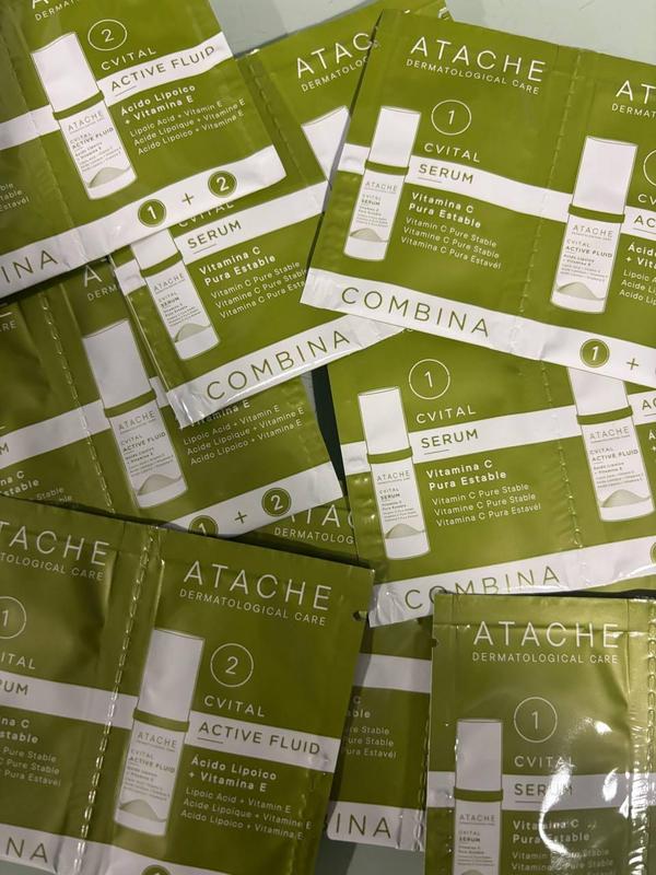 Високоінтенсивний нічний догляд дозволяє захистити епідерміс від зовнішніх подразників, ефективно впливаючи на клітини ззовні та зсередини. Комплекс забезпечує зволоження шкіри, надає їй сяйва і сили, надає антивіковий ефект. Основні активні компоненти впливають на шкіру синергічно, посилюючи властивості один одного, що підвищує ефективність впливу. Сироватка і флюїд мають антиоксидантні властивості, борються зі втомою епідермісу, віковими змінами, і такими зовнішніми факторами, як забруднення та ультрафіолет. До складу набору входять: 1) Активний флюїд Atache C Vital Active Fluid 30мл. 2) Сироватка Atache C Vital Serum 15мл. Активні інгредієнти -- Вітамін С має антиоксидантну дію та розгладжує епідерміс. Стимулює клітинне оновлення та синтез колагену, зменшує активність вироблення меланіну. -- Вітамін Е посилює мікроциркуляцію та антиоксидантний ефект, що забезпечується вітаміном С. Захищає шкіру від негативного впливу сонячного світла. -- Липоєва кислота легко долає мембрану клітин, забезпечуючи антиоксидантний захист шкіри ззовні та всередині. Збільшує рівень вмісту антиоксидантів глутатіону та коензиму Q10 усередині клітин. Активний флюїд допомагає зменшити ознаки фото- та хроностаріння, має антиоксидантний ефект, сприяє поліпшенню структури колагенових волокон.