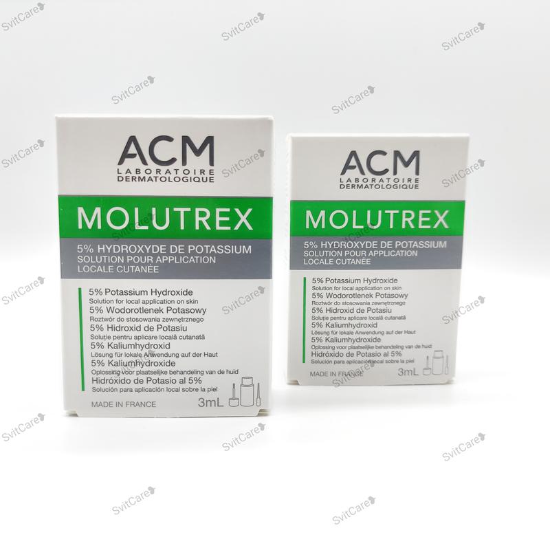 Молютрекс раствор для местного нанесения на кожу для лечения контагиозного моллюска 3мл. Состав и форма выпуска: 1 мл раствора содержит 50 мг гидроксида калия и очищенную воду. Лосьон, флакон объемом - 3 мл. В комплекте кисточка и канюля для точного нанесения лосьона. Характеристика: «Молютрекс» обеспечивает в месте аппликации точечную доставку 5% раствора гидроксида калия в центр папулы контагиозного моллюска. 5% раствор гидроксида калия осуществляет разрушение контагиозного моллюска посредством химического воздействия, обусловленного способностью раствора гидроксида калия проникать в кожу и растворять кератин. Действие Молютрекс (Molutrex) заключается в разрушении контагиозного моллюска. Через несколько дней после начала применения на участке, пораженном контагиозным моллюском (при этом избегайте попадания на здоровую кожу), наблюдается легкое покраснение. После этого применение следует прекратить. Это покраснение - показатель того, что контагиозный моллюск в скором времени исчезнет, это может занять от 2 до 6 недель. Инструкция: Взять небольшое количество Molutrex на кисточку или на ватную палочку, прижав их к горлышку бутылки, чтобы излишки жидкости стекли в бутылку, и лишние капли не попали на здоровую кожу. Нанесите раствор на три моллюска и оставьте до полного высыхания. Затем снова окуните кисть в раствор, снова прижмите к краю бутылки, чтобы лишняя жидкость стекла и обработайте следующие три моллюска, стараясь не попадать на здоровую кожу и давая полностью высохнуть. Обрабатывать моллюсков 1-2 раза в день, утром и вечером. Может возникнуть небольшое жжение, это говорит о том, что средство работает. Повторять процедуру несколько дней подряд, пока не возникнет покраснение (обычно появляется за 4-10 дней), этот признак дает понять, что болезнь уходит. Показания к применению Лечение кожного контагиозного моллюска. Противопоказания к применению: не рекомендовано для приема детям младше 3 лет; наносить препарат на области вокруг глаз и слизистой оболочки; индивидуальная непереносимость на компоненты; при воспалении болезни; наносить на область родинок и бородавок. Побочные действия: В основном это жжение и зуд. После удаления моллюска может появиться гиперпигментация, либо, наоборот, кожный покров обесцветится. Не стоит волноваться по этому поводу - эти реакции быстро проходят. Лекарственное взаимодействие: Чтобы избежать взаимодействий с другими препаратами, необходимо всегда сообщать врачу или фармацевту о любом другом курсе лечения, который Вы проходите в данный момент. Меры предосторожности: Если препарат попал на область бородавки, родинки, глаза, слизистой оболочки необходимо это место обильно промыть под проточной водой. «Моллютрекс» не рекомендовано использовать на здоровой коже, лучше избегайте контакта, при попадании на руки смывайте водой. Препарат новый. Оригинал! Франция. Срок действия 10/26