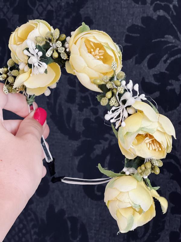 Чудовий обруч ручної роботи із ранункулюса яскравого жовтого кольору