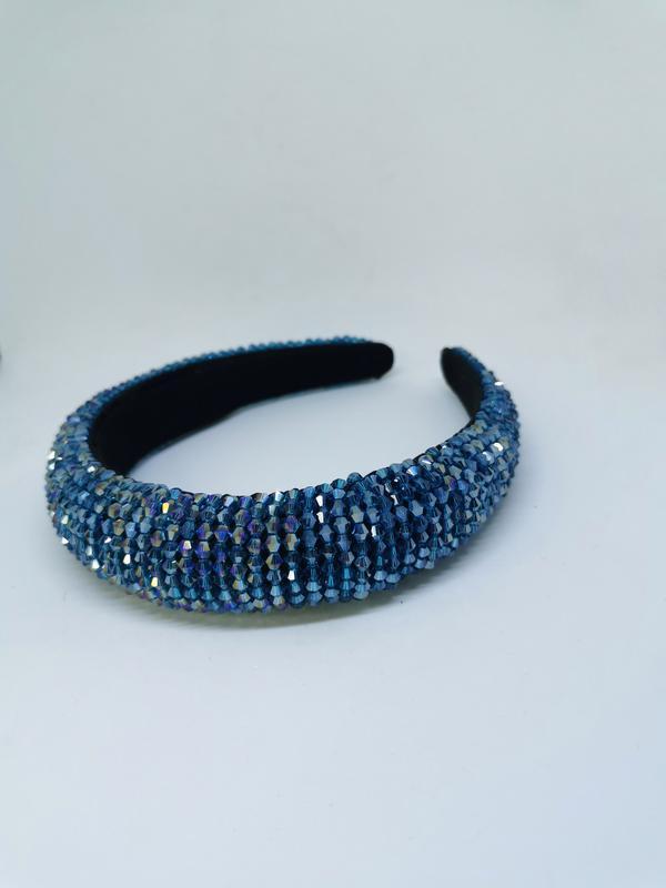 Красивый обруч для волос из крупного бисера синего цвета