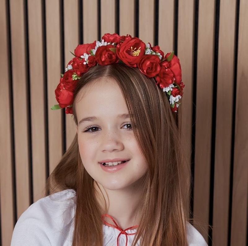 Обруч під вишиванку, віночок під вишиванку, обруч червоний квіти,