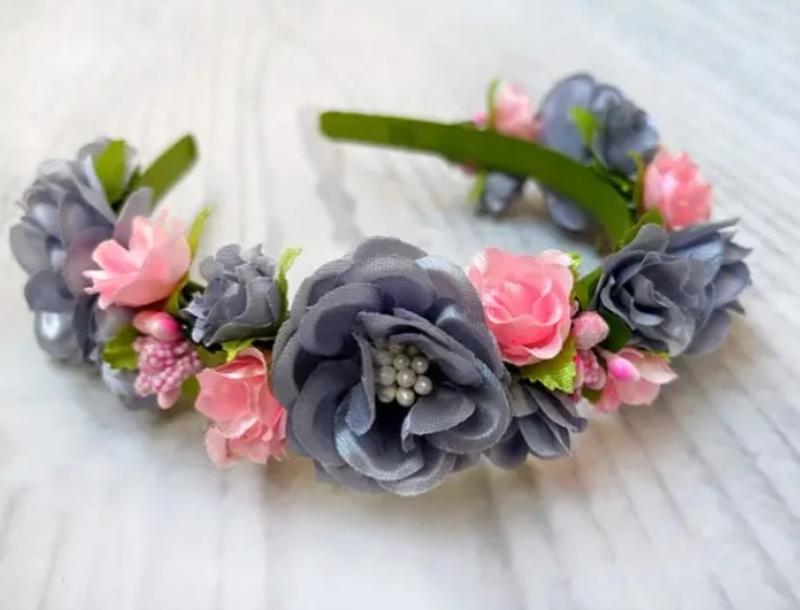 Обруч для волос ручная работа, выполненный из искусственных цветов, тычинок и флористичных деталей. Подходит для детей и для взрослых.