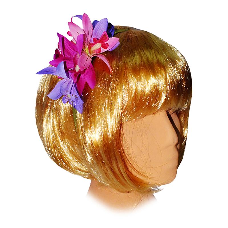 Обруч із яскравими квітами в гавайському стилі. Чудово підійде як доповнення до образу на гавайську вечірку. Розмір квіткової композиції: Ширина 12 см Висота 7 см