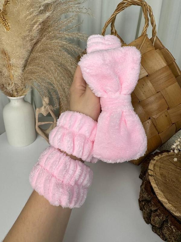 Набір для вмивання - це спасіння для кожної дівчини, що допомагає зробити рутину вранці та ввечері більш комфортною . Напульсники не дозволяють стікати воді по рукам вниз , а обруч залишає наше волосся сухим . В набір входить: ✔️ стильний пов'язка з бантиком на голову ✔️ напульсники (2 шт)