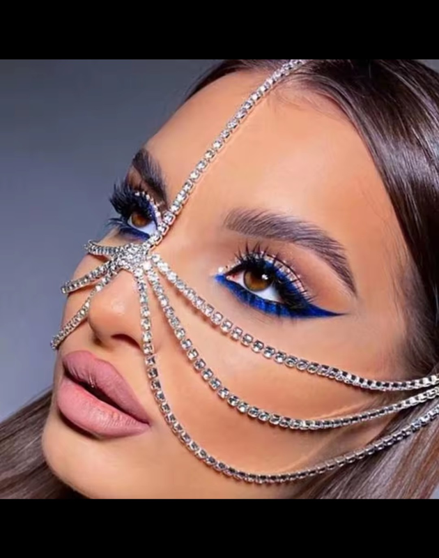 Шикарна прикраса на голову і на обличчя зі стразами Регулюється ланцюжком