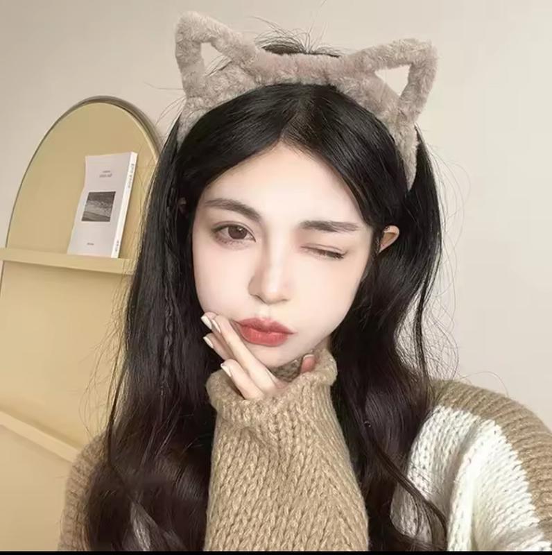 Пушистый ободок с ушками / милый обруч кошачьи ушки \ бежевый обруч с ушками